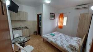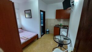 Nasza okolica jest idealna na spokojne, rodzinne wakacje, ponieważ jest oddalona od głównych dróg, cisza i spokój. Duży, zielony teren ogrodzony, blisko morza, 5-7 minut od morza. W pobliżu znajdują się dwie restauracje z lokalną kuchnią śródziemnomorską. Jeden sklep znajduje się nad morzem w odległości 10 minut spacerem, a drugi supermarket przy drodze w kierunku Ulcinj również jest w odległości 10 minut spacerem. Do Baru jest około 15 km, a do Ulcinj około 10 km. Kilka kilometrów dalej znajduje się słynne muzeum miejskie Strai Bar. Przystanek autobusowy znajduje się 20m od apartamentu, a dworzec kolejowy 14km od apartamentu.