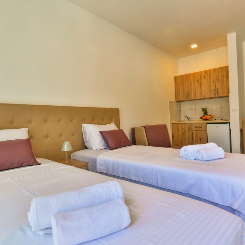 Apartamentowiec APART HOUSE FAMILYdysponuje apartamentami; dwuosobowymi, trzyosobowymi i czteroosobowymi, dodatkowym atutem są rozsuwane łóżka małżeńskie. Każdy apartament posiada aneks kuchenny, łazienkę, aneks kuchenny wyposażony jest w płytę grzewczą, lodówkę i przybory kuchenne. Wszystkie pokoje posiadają balkon z pięknym widokiem na morze lub góry. Klimatyzacja dostępna jest we wszystkich apartamentach . Na miejscu dostępny jest darmowy Internet Wi-Fi. Doba hotelowa zaczyna się o 14, a kończy o 10.