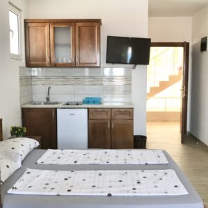 Apartamenty ASIR dysponują apartamentami :dwuosobowymi, trzyosobowymi, czteroosobowymi oraz apartamentem SUITE na maksymalnie 6 osób. Wszystkie apartamenty posiadają aneksy kuchenne oraz łazienkę. Aneks kuchenny wyposażony jest w kuchenkę elektryczna , lodówkę i przybory kuchenne. Wszystkie pokoje posiadają balkony z pośrednim widokiem na morze lub góry. Klimatyzacja dostępna jest we wszystkich apartamentach . Na miejscu dostępny jest darmowy Internet Wi-Fi. Doba hotelowa zaczyna się o 14, a kończy o 10.