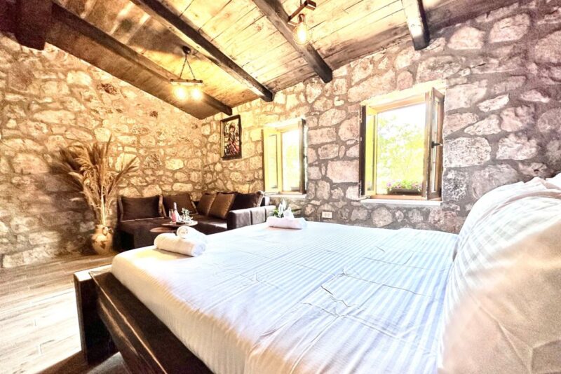Demčova Kula- Old Stone House dysponuje czterema wyjątkowymi apartamentami zbudowanymi w starym, czarnogórskim stylu. W każdym z nich znajduje się łóżko małżeńskie oraz rozkładana sofa dla dwóch osób. Wszystkie apartamenty posiadają łazienkę oraz ręczniki. Każdy apartament posiada taras
