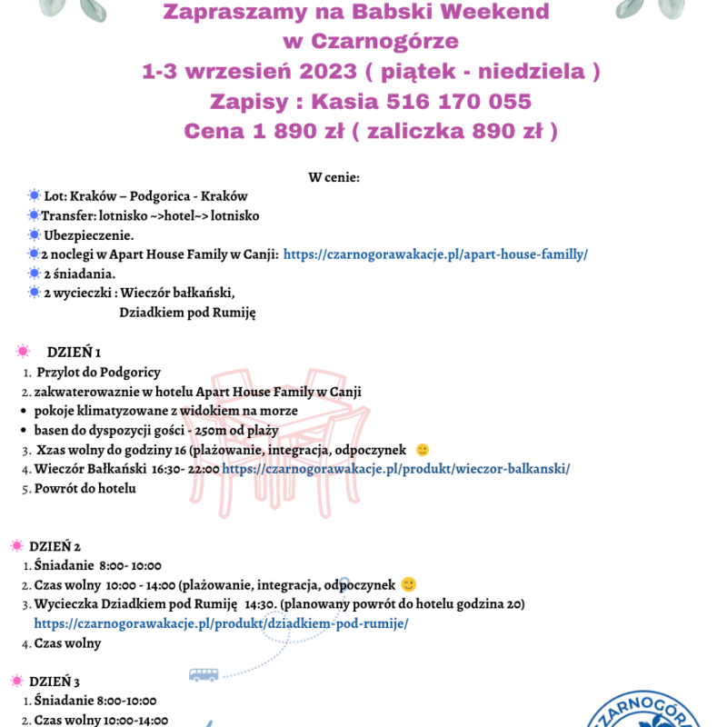 ZAPRASZAMY NA CITY BREAK W Czarnogórze !!!!