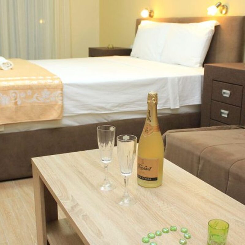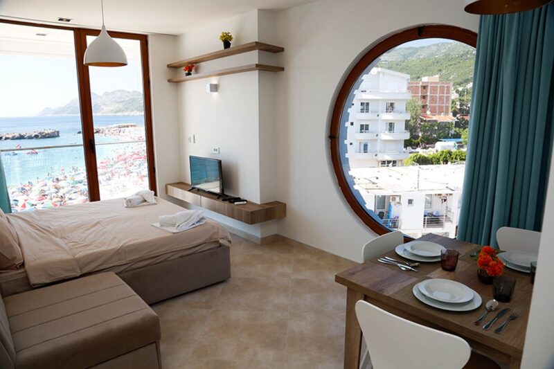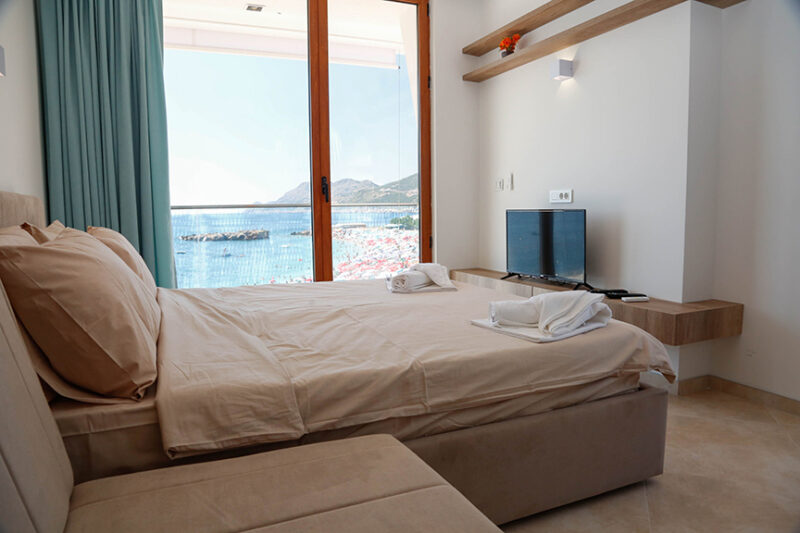 Hotel Plavi Jadran dysponuje apartamentami dwuosobowymi, trzyosobowymi i pięcioosobowymi składającymi się z dwóch sypialni i pokoju dziennego. Każdy apartament posiada aneks kuchenny oraz łazienkę. Aneks kuchenny wyposażony jest w płytę grzewczą, lodówkę i przybory kuchenne. Wszystkie pokoje posiadają balkon z pięknym widokiem na morze lub góry. Klimatyzacja dostępna jest we wszystkich apartamentach . Na miejscu dostępny jest darmowy Internet Wi-Fi. Doba hotelowa zaczyna się o 14:00, a kończy o 10:00.