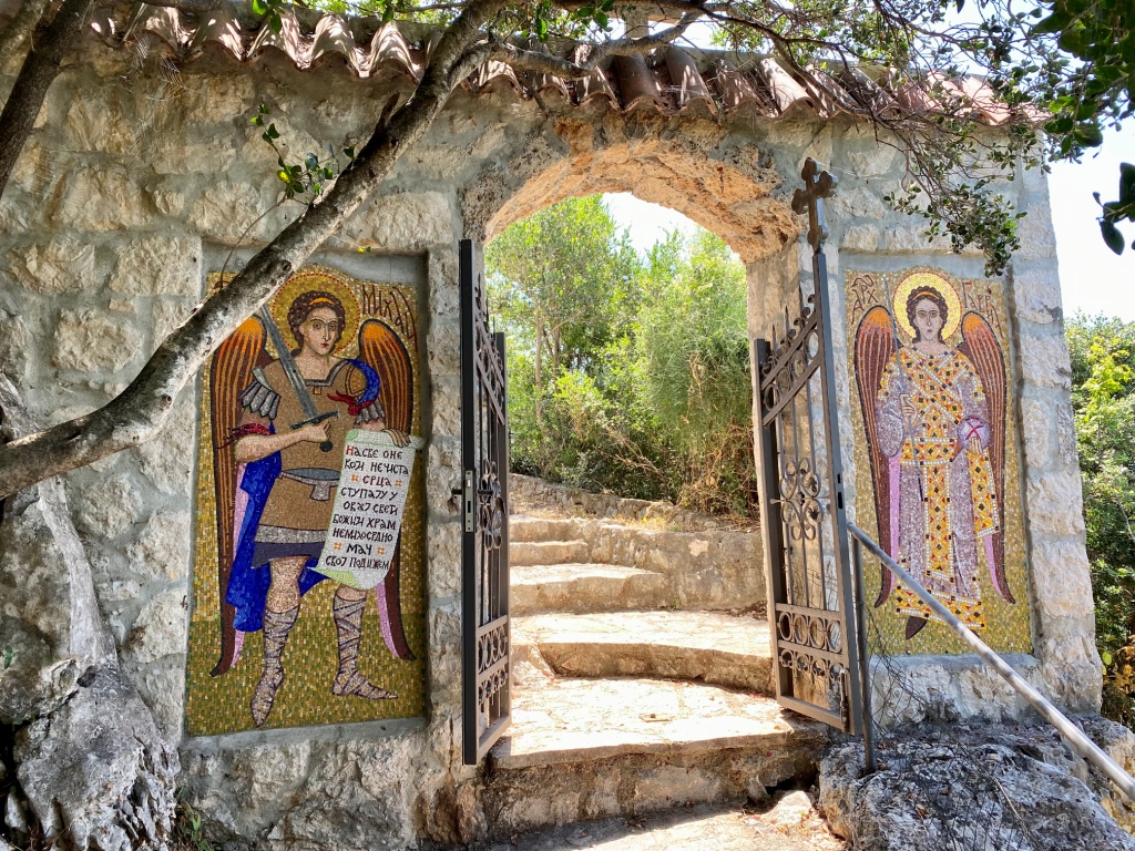 Po pierwszej godzinie rejsu, 30-40 minutowa przerwa na wyspie Kom, gdzie zwiedzamy XV wieczną cerkiew Bogurodzicy. Jest to okazja, do poznania wyjątkowego ojca Filipa, który czasem częstuje pysznym sokiem z granatu lub winem własnej produkcji.